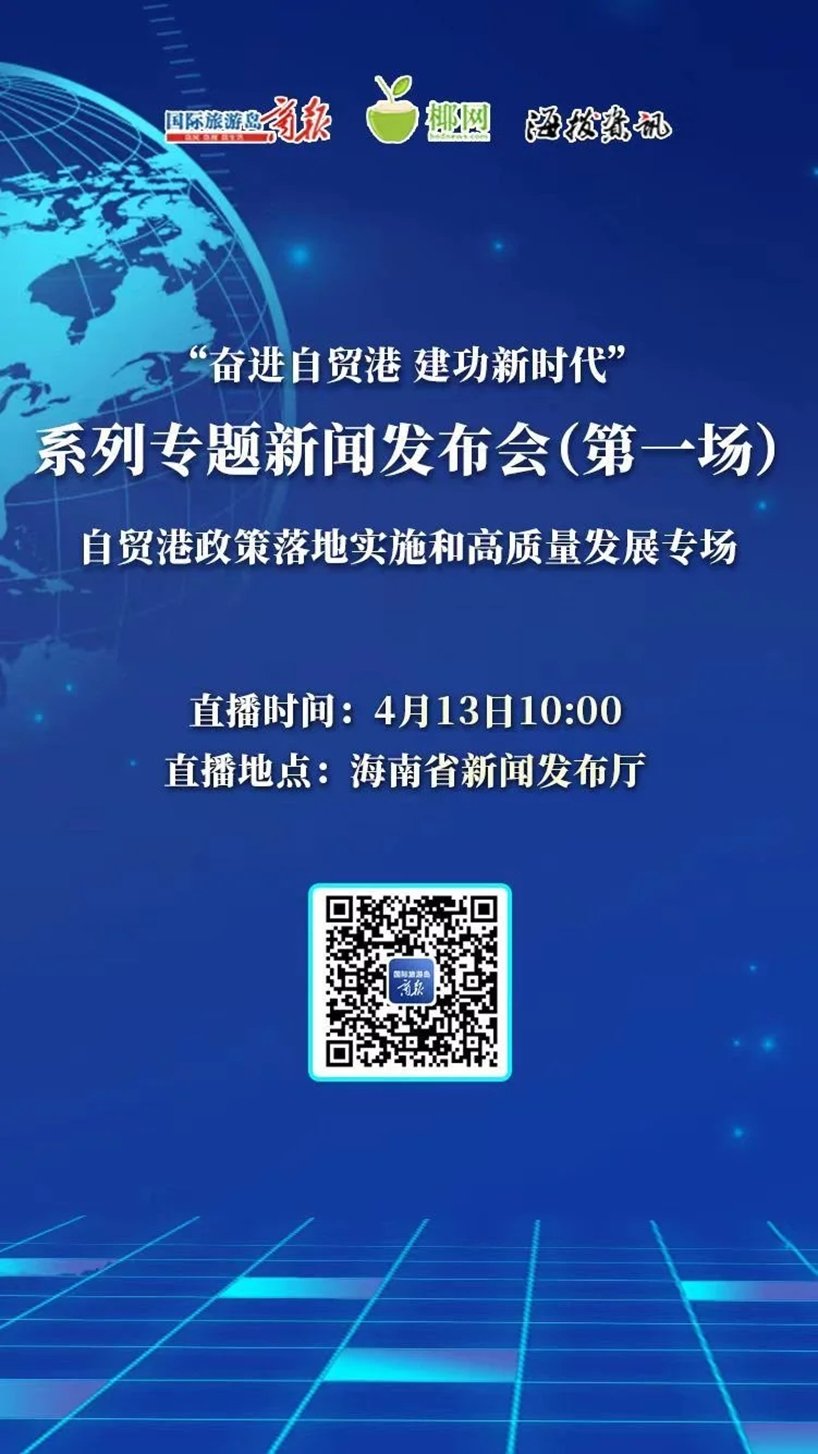 今日10时,海南省委宣传部将举行“奋进自贸港建功新时代”系列专题新闻发布会(第一场),披露海南自贸港政策落地实施和高质量发展最新情况。届时,国际旅游岛商报将在新华社现场云、国际旅游岛商报官方网站椰网、海拔资讯APP、抖音、快手等平台对发布会进行全程视频直播,并配图文、小视频,敬请关注。详情
