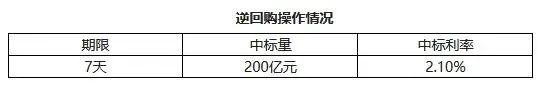 央行进行200亿元7天期逆回购操作,中标利率为2.10%,与此前持平。因12日无逆回购到期,实现净投放200亿元。详情