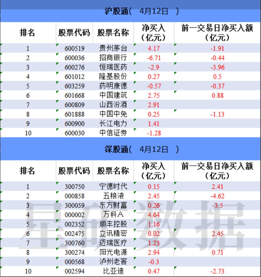北向资金12日大幅净买入91.37亿元。万科A、贵州茅台、阳光电源分别获净买入4.64亿元、4.17亿元、2.94亿元。招商银行净卖出额居首,金额为6.71亿元。