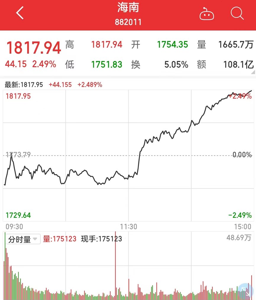 ▊ 海南板块再度冲高,5只个股涨停
