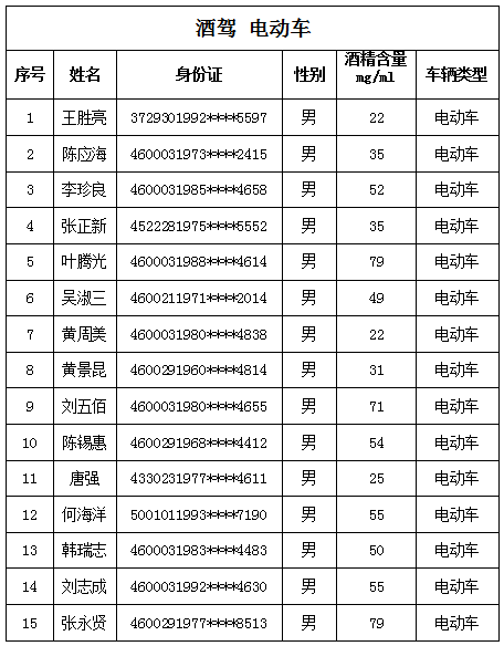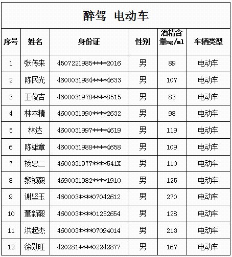 商报全媒体讯(椰网/海拔新闻记者 黄桂风)10月14日,儋州市公安局交警支队曝光最新一批酒驾醉驾名单,请广大交通参与者引以为戒。