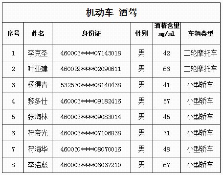41人!儋州公安交警实名曝光9月份酒驾醉驾人员名单