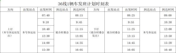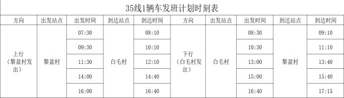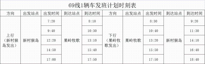 首班:7:20分,末班:16:35分,发班间隔:120-180分钟
