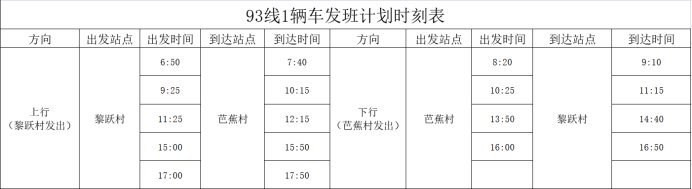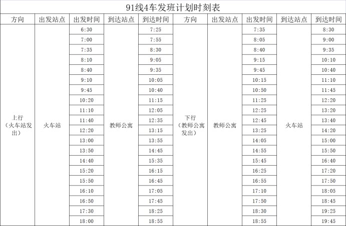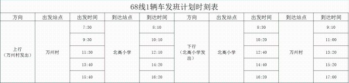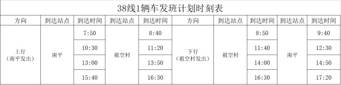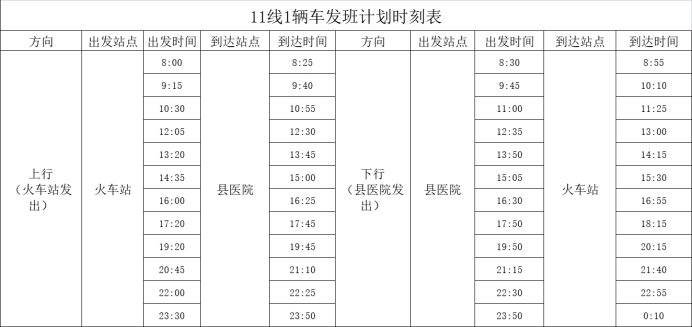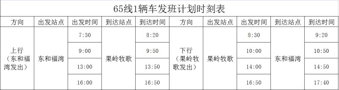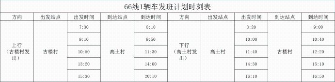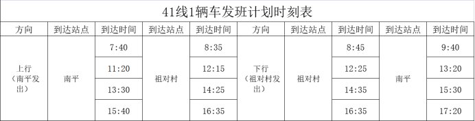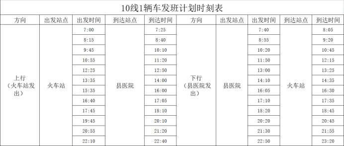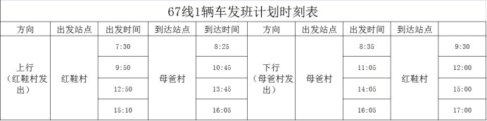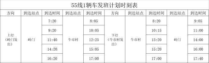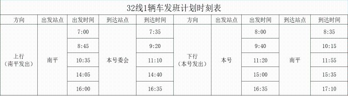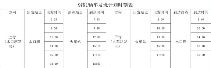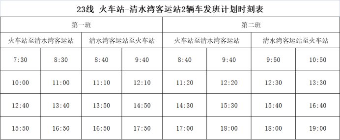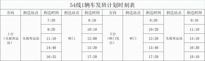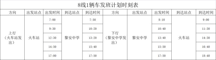 首班:7:10分,末班:15:50分,发班间隔:80分钟