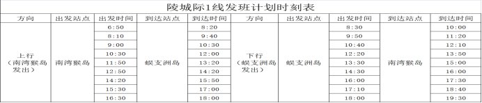 首班:7:50分,末班:15:40分,发班间隔:150-160分钟