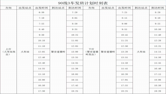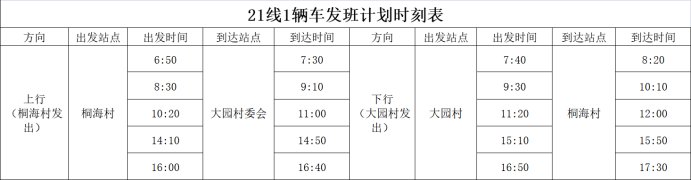 首班:6:30分,末班:16:30分,发班间隔:90-120分钟