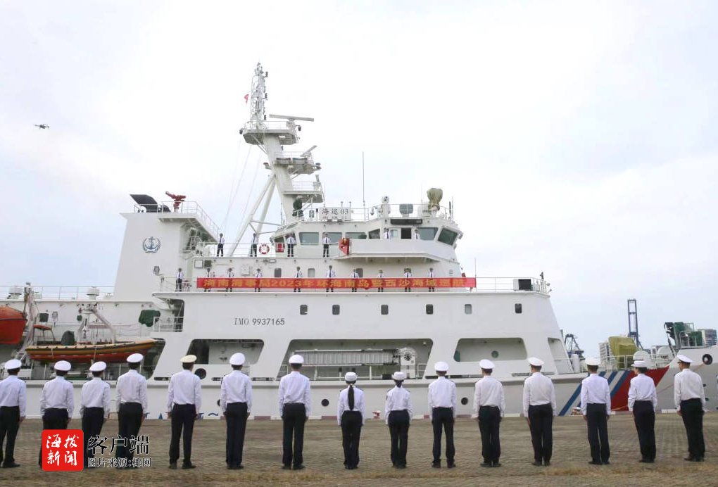 “海巡03”轮将沿海南岛东线,途经琼州海峡、“深海一号”作业平台、西沙北礁、永乐群岛,于6月11日抵达西沙永兴岛,并在西沙海域驻守。7月上旬,“海巡03”轮将从西沙出发,沿海南岛西线,途经三亚、八所、洋浦,最后返回海口。