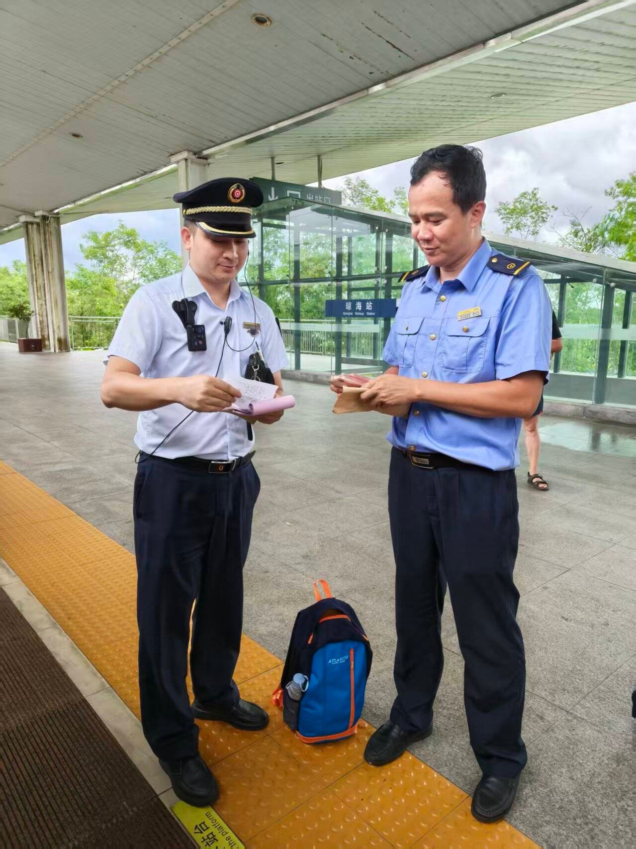 旅客乘高铁时不慎遗落装有万元现金背包,海南环岛高铁工作人员接力寻回