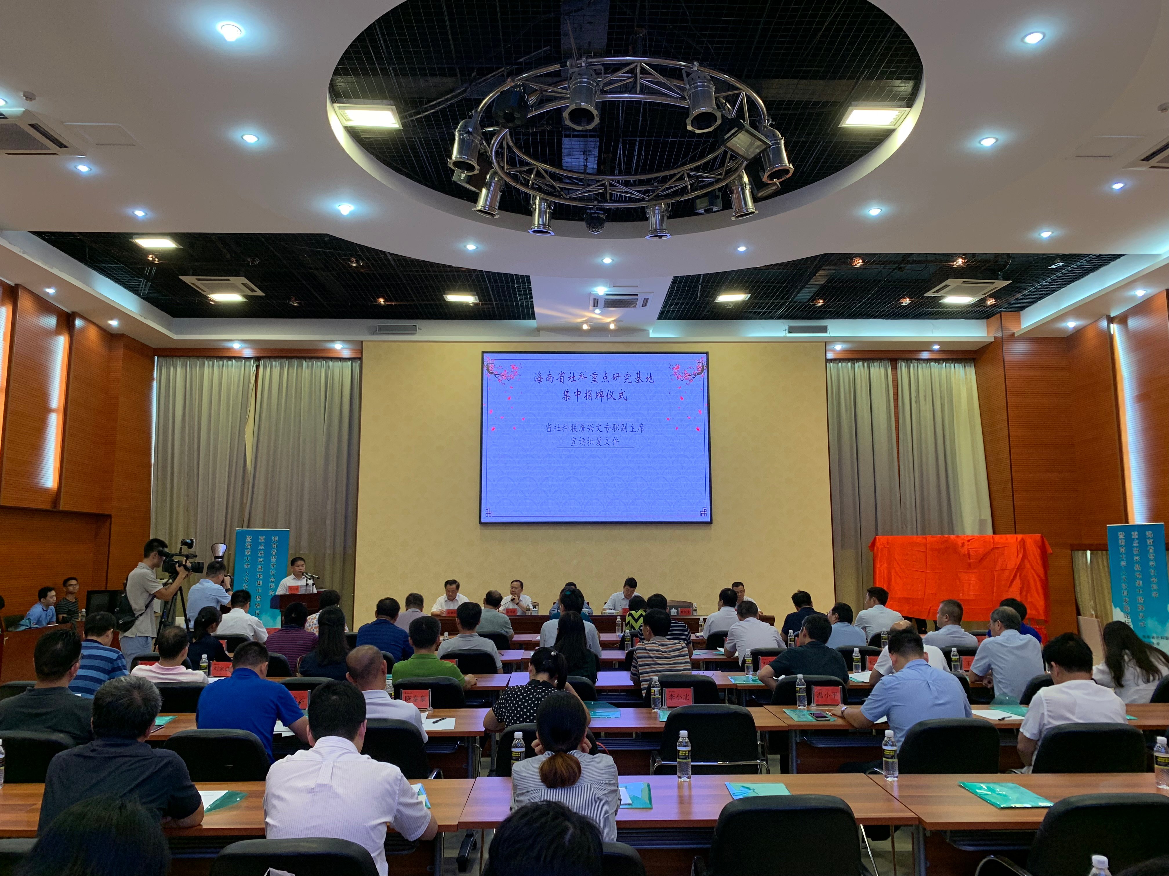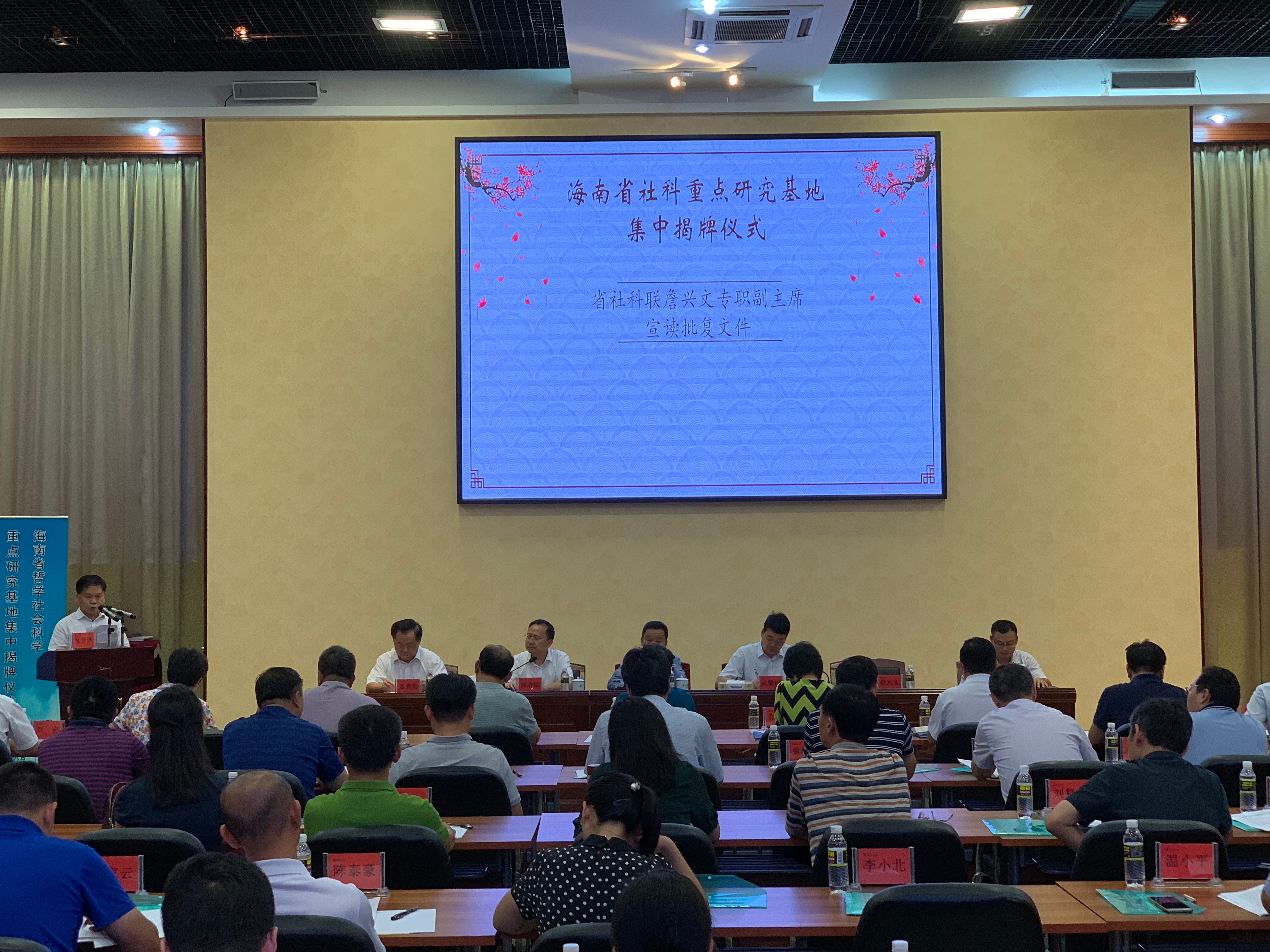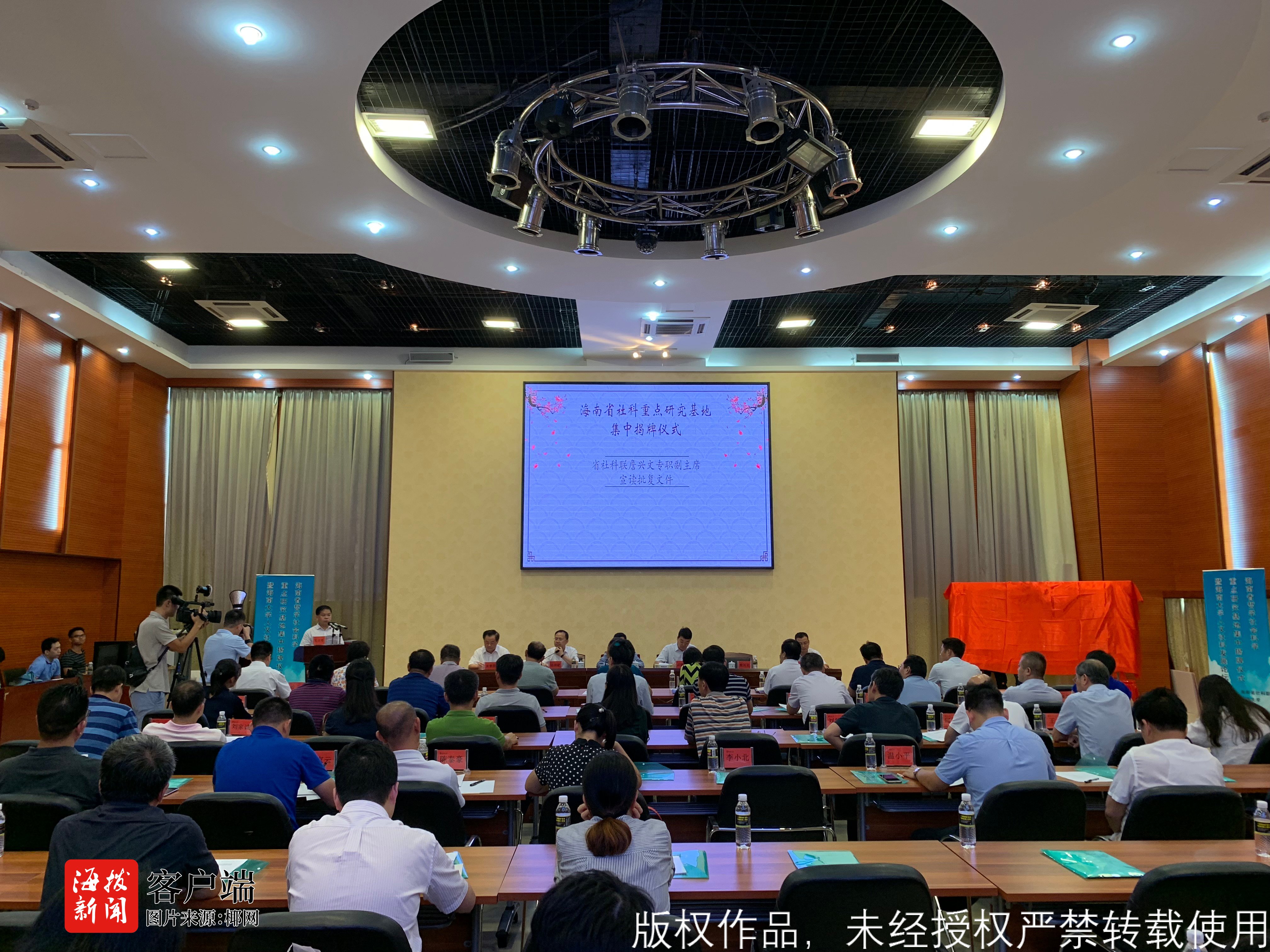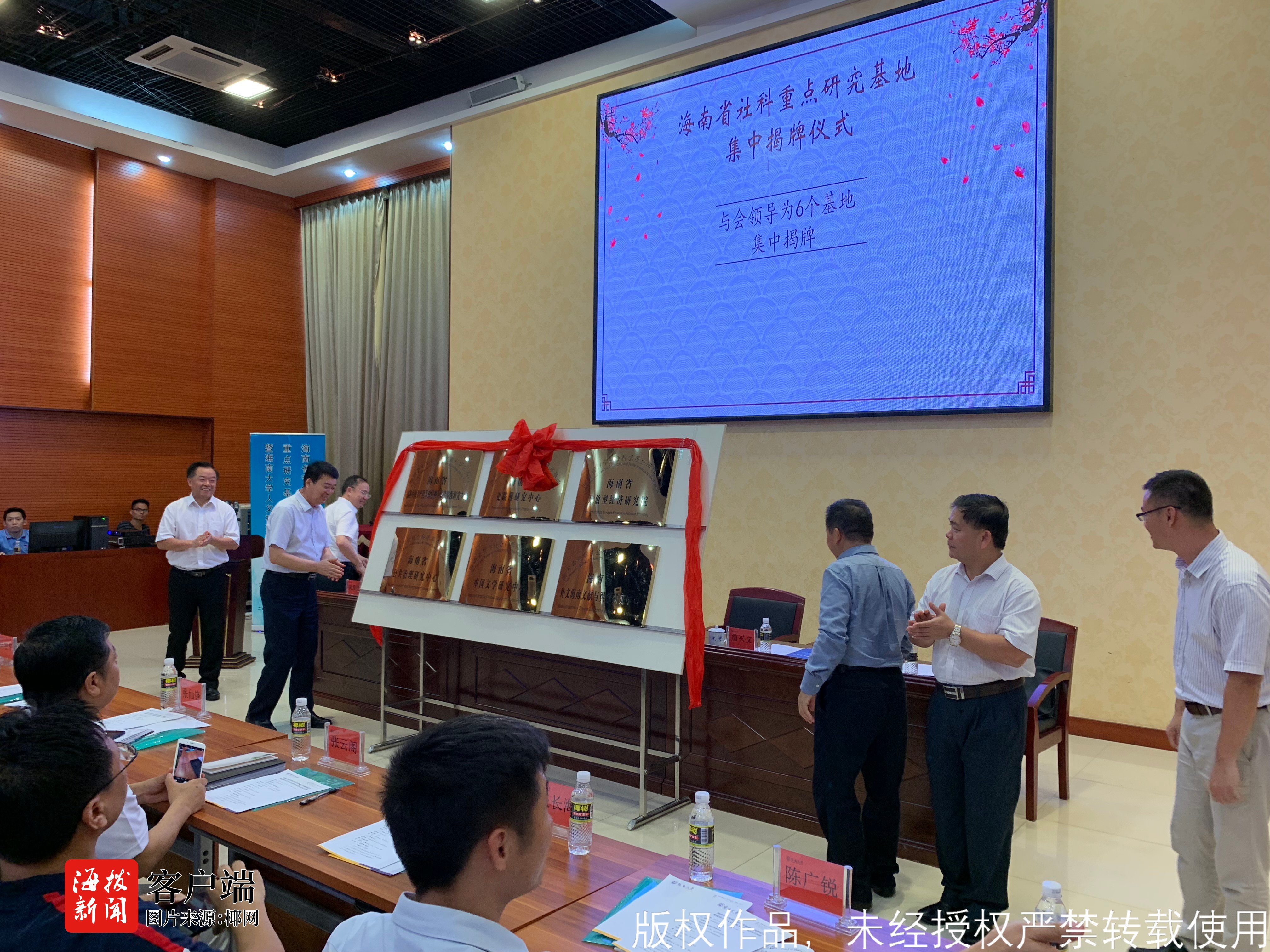 商报全媒体讯 (椰网/海拔手机端记者王茹 摄影报道) 5月18日下午,海南省社科重点研究基地集中揭牌仪式暨海南大学人文社科发展论坛在海南大学举办。海南省高校中国共产党革命精神与文化资源研究中心、海南省“更路簿”研究中心、海南省开放型经济研究院、海南省公共治理研究中心、海南省外文海南文献与舆情研究中心、海南省中国文学研究中心6个机构将作为省级社科重点研究基地进行建设。