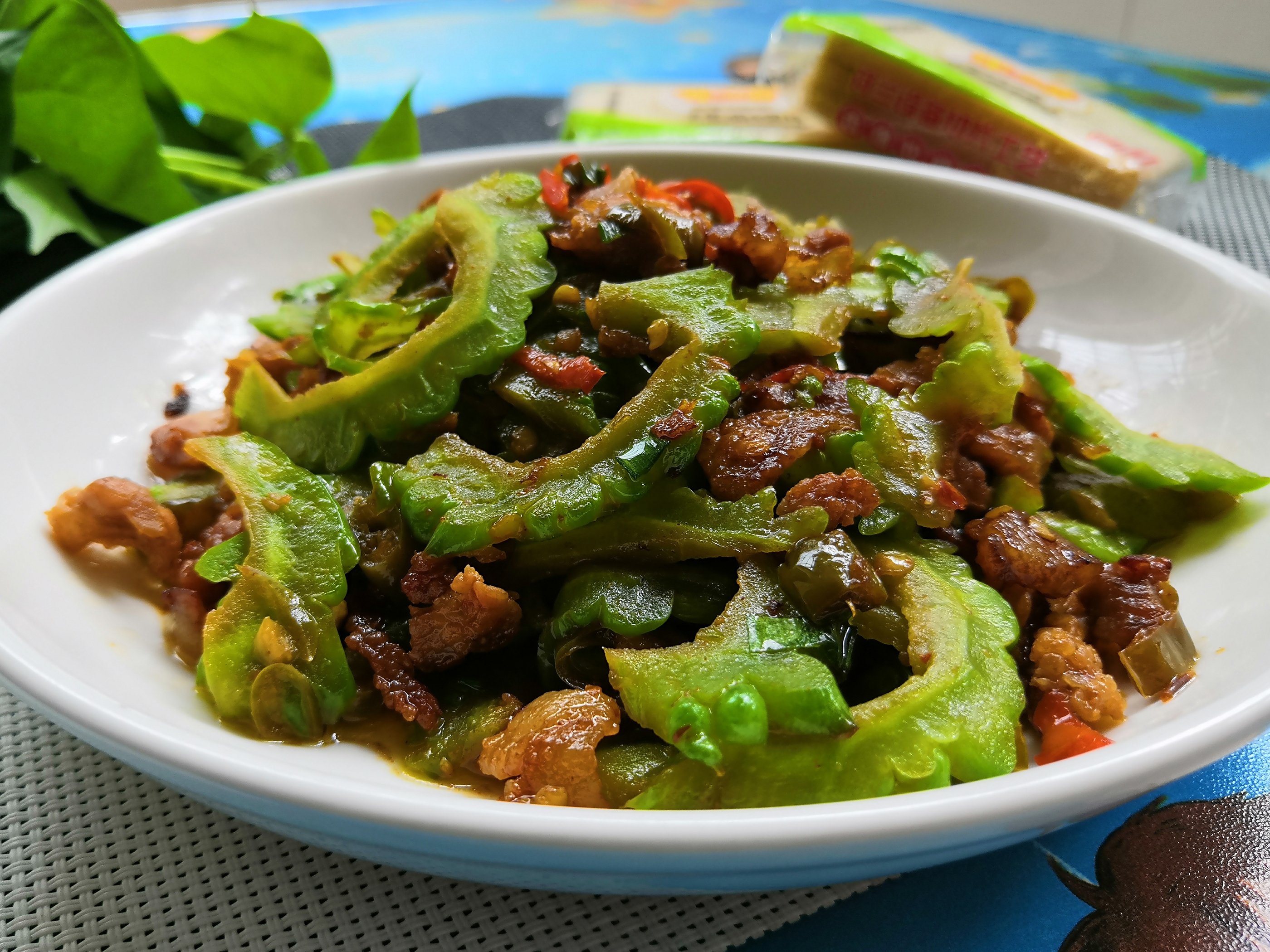 吃多了凉拌苦瓜,苦瓜炒蛋,酿苦瓜等,今天换个快手的炒菜,用少许的五花肉炒苦瓜,味道更独特,很下饭哦。