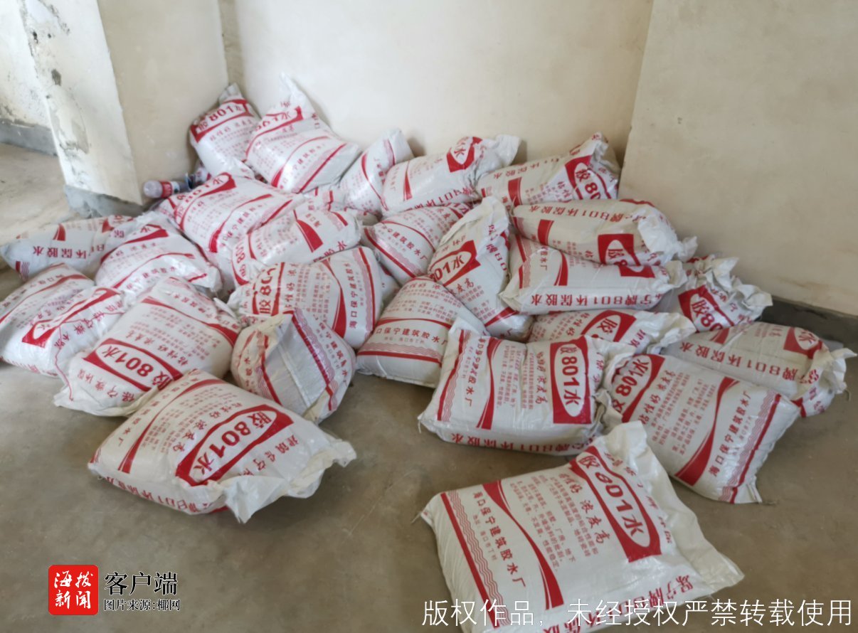 在现场,执法人员要求相关负责人提供“保宁”牌胶水厂家营业执照、产品检测报告等进货证明,负责该栋楼装修的劳保班组负责人李某未能提供,其向执法人员承认道,“保宁”牌胶水是自己以九块多元的便宜价格从海口丁村购买来的,营业执照已经过期,检测报告也是过期的,但是由于该款胶水便宜,所以还是购买来使用了。