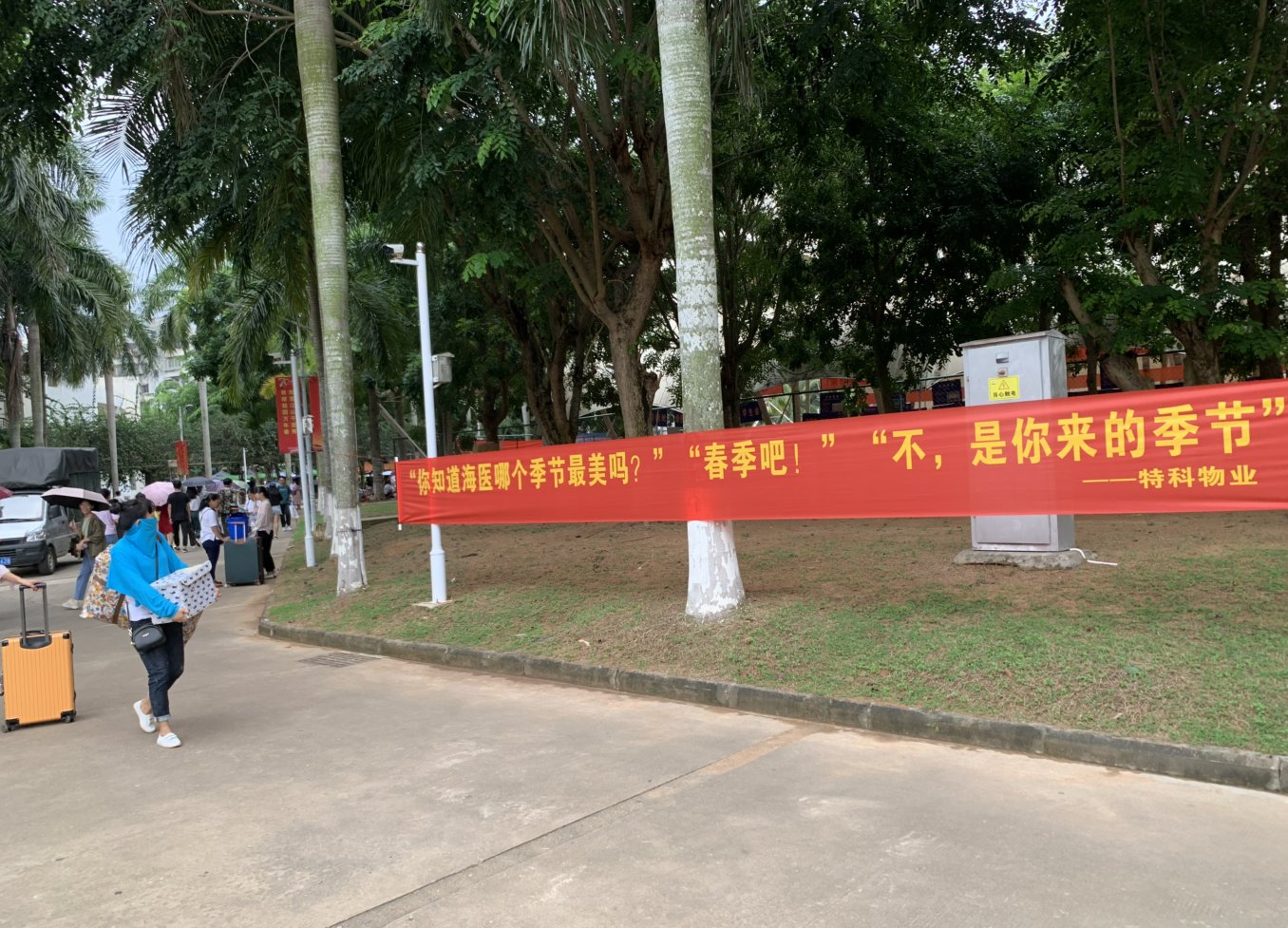 商报全媒体讯(椰网/海拔手机端记者 王茹 摄影报道)“你知道海医的哪个季节最美吗?”“是你来的季节!”8月24日,海南医学院2019届新生如期到校报到,国际旅游岛商报记者走进海南医学院校园感受了一把“青春活力”。在现场记者看到,极有创意的欢迎新生横幅吸引了不少新生驻足“围观”。据了解,今年海南医学院新生人数为3550人,其中本科生2350人,专科1200人。