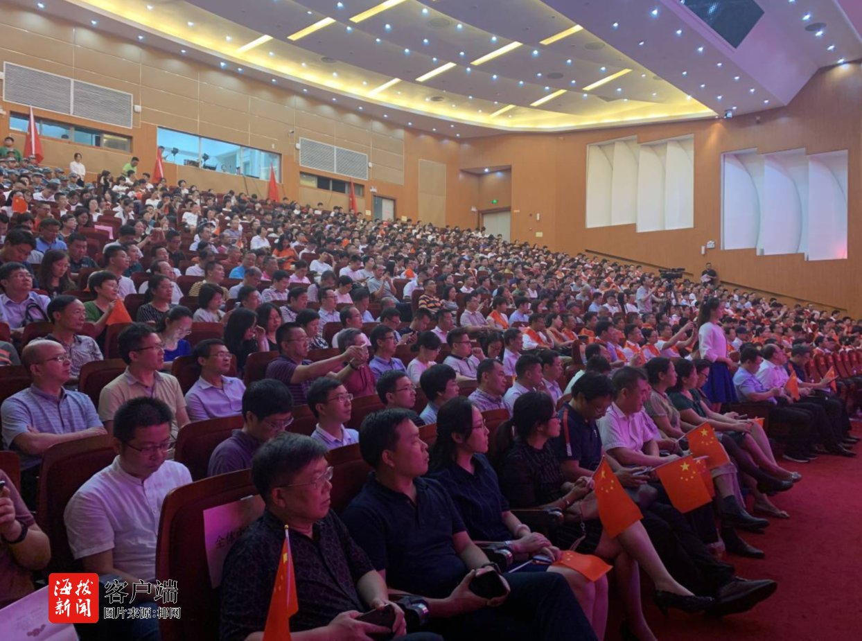 9月10日下午,海南大学举办了2019年教师节庆祝大会,大会上座无虚席,鲜红的五星红旗挂在每个教师身旁,现场热闹非凡,一片喜庆。大会在学生们深情款款的高声朗诵声中拉开了帷幕,台上学生句句铿锵有力、声情并茂,真诚的向在场的每一位老师献上了诚挚的祝福和感谢,这是学生为庆祝教师节准备的特别开场节目。会上对全校教育工作中涌现出的先进个人、先进集体进行了表彰奖励。