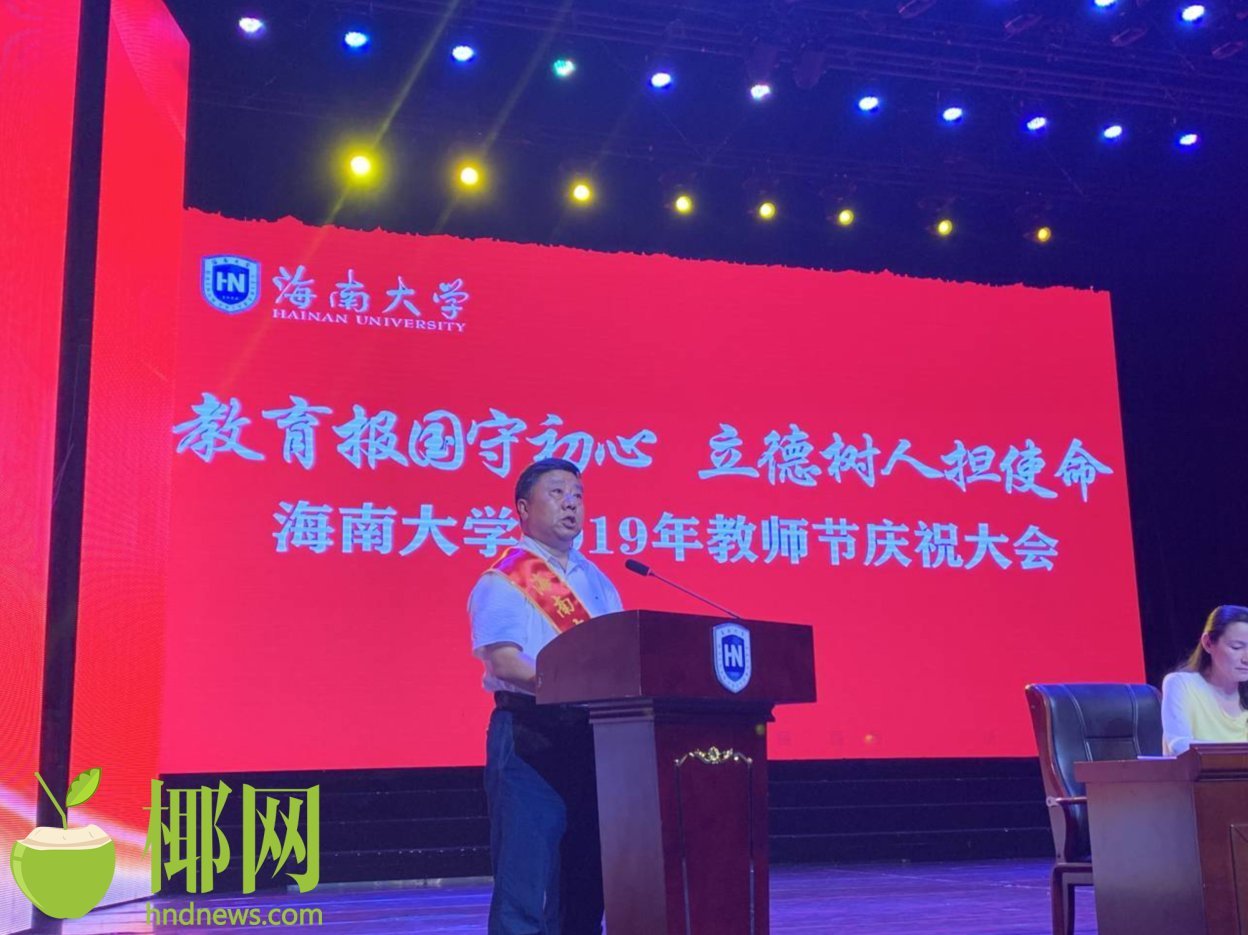 今天是教师节35岁的生日,而在海南大学的教师队伍中,记者捕捉到一名刚好教龄35年的教师。今天,他代表全体优秀教师上台发言。他就是海南大学教务处处长、马克思主义学院院长张云阁。