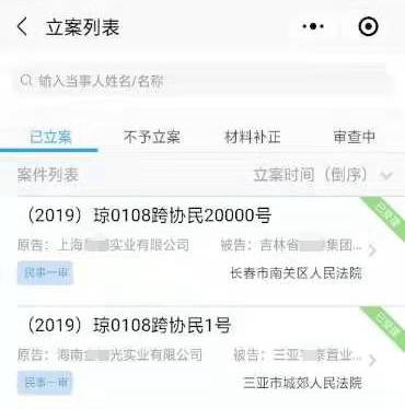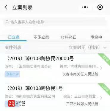 9月23日,原告上海易某实业有限公司代理人石某明来美兰法院递交了起诉被告吉林省某游集团有限公司、海某旅游集团有限公司,确认之诉的诉讼材料,立案人员经审查后认为,本案的管辖法院应为长春市南关区人民法院。为方便当事人异地诉讼,经征询原告代理人意见后,立案人员利用“海南移动微法院”跨域立案平台,与长春市南关区法院进行对接,将原告上海易某实业有限公司提交的起诉状、身份信息、证据等诉讼材料通过扫描并逐项输入案件相关信息后上传移送至长春市南关区人民法院,由该院审查立案事宜。经该院审查,符合立案条件,用时不到30分钟就成功办理立案手续。截至9月23日,美兰法院已受理网上立案申请100余件,其中跨域立案案件6宗(其中跨市区立案案件2宗,跨省立案案件4宗),已完成跨市区和跨省案件各1宗。