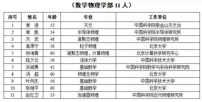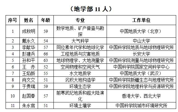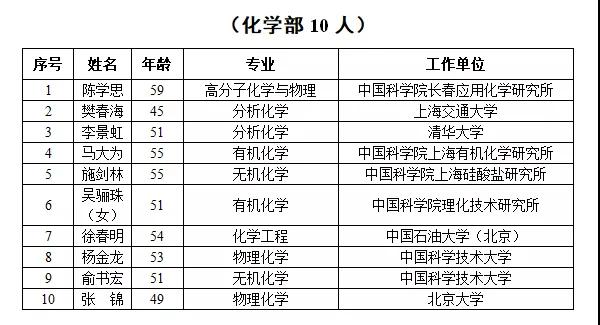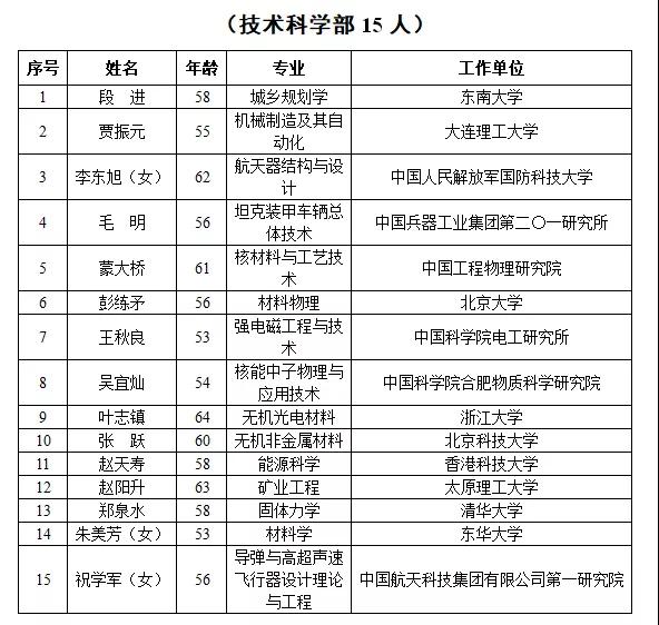 2019年新当选中国科学院院士名单