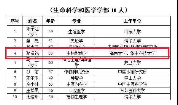 商报全媒体讯(椰网/海拔手机端记者 王茹 通讯员 余梦月)11月22日,中国科学院公布了2019年新增院士名单。海南大学校长骆清铭当选生命科学和医学学部院士。