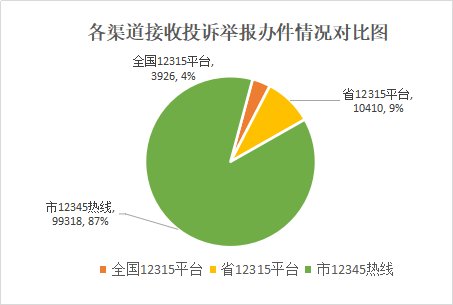 商报全媒体讯(椰网/海拔手机端记者 徐明锋)5月11日,海口市市场监督管理局发布的《2019年度投诉举报数据综合分析报告》(以下简称《报告》)显示,2019年1月1日至2019年12月31日,海口市市场监管局通过全国12315平台、省12315平台、市政府12345热线等各类渠道共接收投诉87551件、举报26103件,共113654件,挽回经济损失984.49万元。其中全国12315平台共接收投诉、举报办件3926件;省12315平台共接收投诉、举报办件10410件;市12345热线共接收投诉、举报办件99318件。