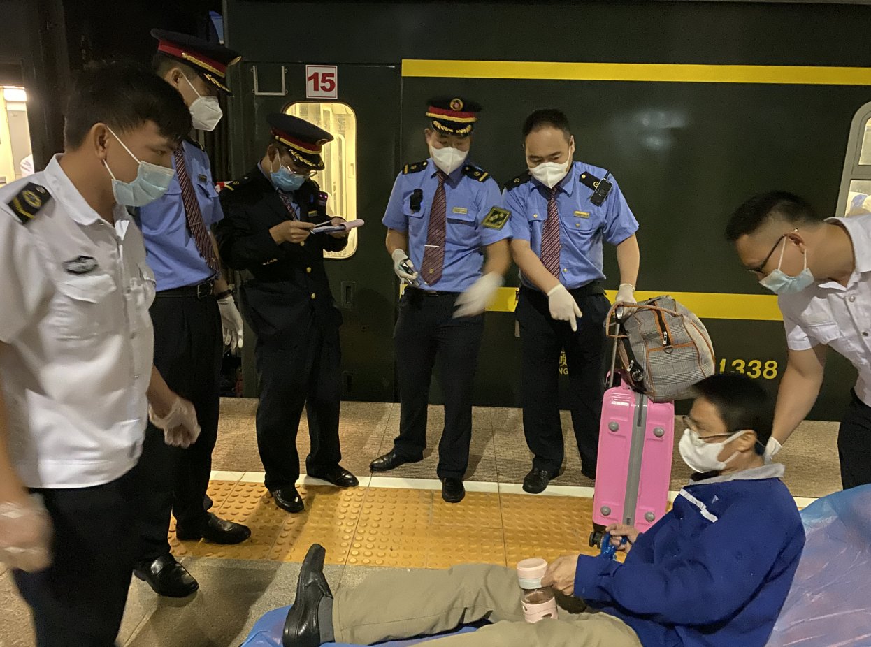当日,一名旅客在列车上突患疾病,接到列车长发出的求助信息后,东方站立即做好应急准备,开辟绿色通道,使患病旅客一下车便得到医治。