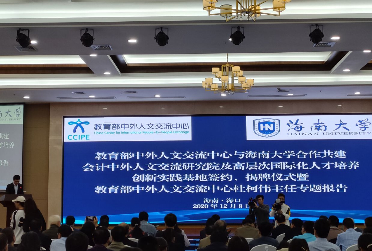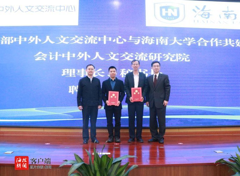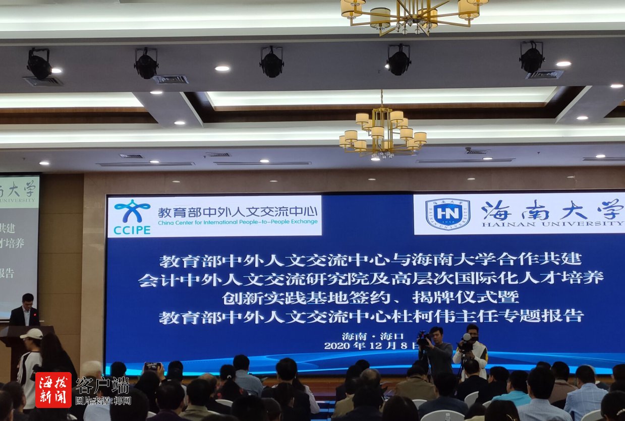 商报全媒体讯(椰网/海拔手机端记者 魏铭纬 通讯员 张赫)12月8日,国际旅游岛商报记者从海南大学获悉,教育部中外人文交流中心与海南大学在国际学术交流中心签署协议,合作共建“会计中外人文交流研究院”,并举行“会计中外人文交流研究院”“高层次国际化人才培养创新实践基地”揭牌仪式。