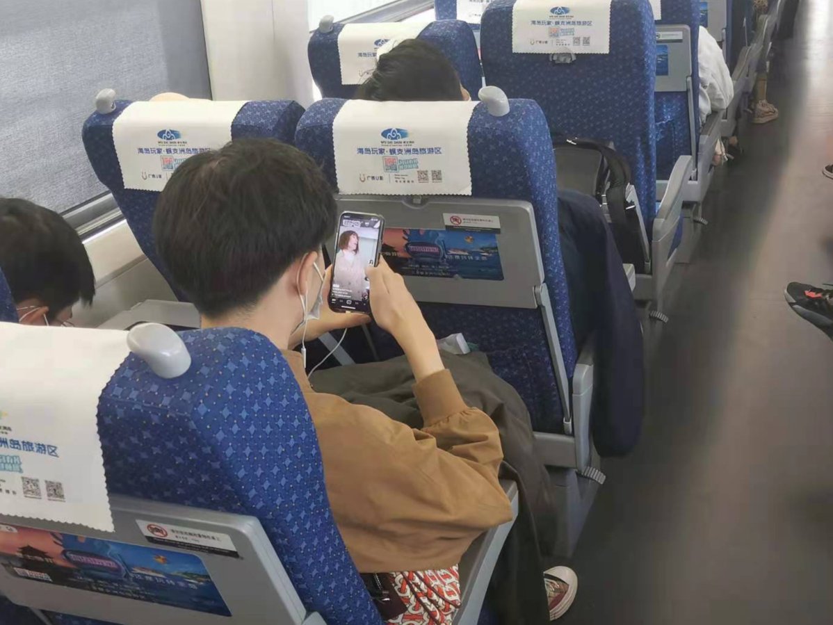 上车后记者发现,上车寻找座位、接听电话、孩子哭闹等情况产生的声音较大,多数乘客在追剧或者刷抖音时都会自觉戴上耳机。一路上车厢内随时都有人在走动,讲话声、孩子的哭闹声、接听电话声……各种杂音交织在一起,虽略微有些吵闹,但还能接受。