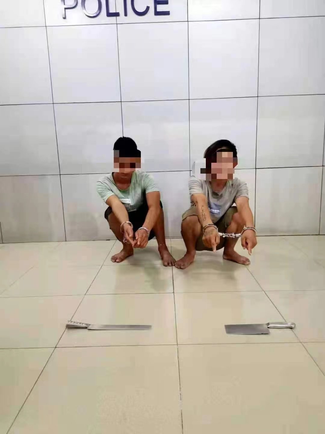 6月20日22时41分许,东方市公安局指挥中心接报称,在东方市龙珠商城处有人持刀抢劫后逃跑。接报后,东方市公安局高度重视,立即启动合成作战机制,特巡警大队、八所派出所赶赴现场处置。特巡警大队根据情报指挥中心(合成作战中心)、八所派出所提供的信息沿路追踪,在确定作案嫌疑人作案后的逃跑路线、面部特征及其中一名嫌疑人的身份信息后,特巡警大队猎鹰中队火速前往案发地周边进行走访搜索,通过相关侦查措施进行研判,6月21日凌晨1时40分许,在东方市人民南路金六福金店处抓获该抢劫案两名嫌疑人罗某彪和吉某四,追回手机一部,扣押作案刀具二把。