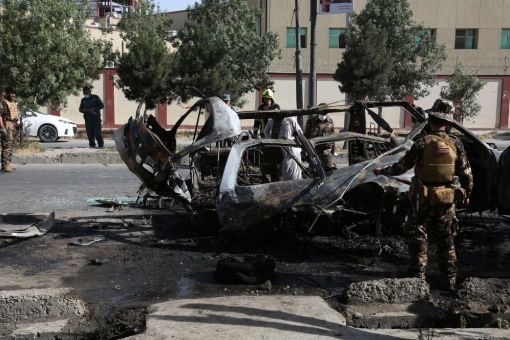6月12日,阿富汗首都喀布尔的一条公路发生两起爆炸袭击事件。图为阿富汗安全人员在现场调查。(新华社发,赛义德·莫明扎达摄)
