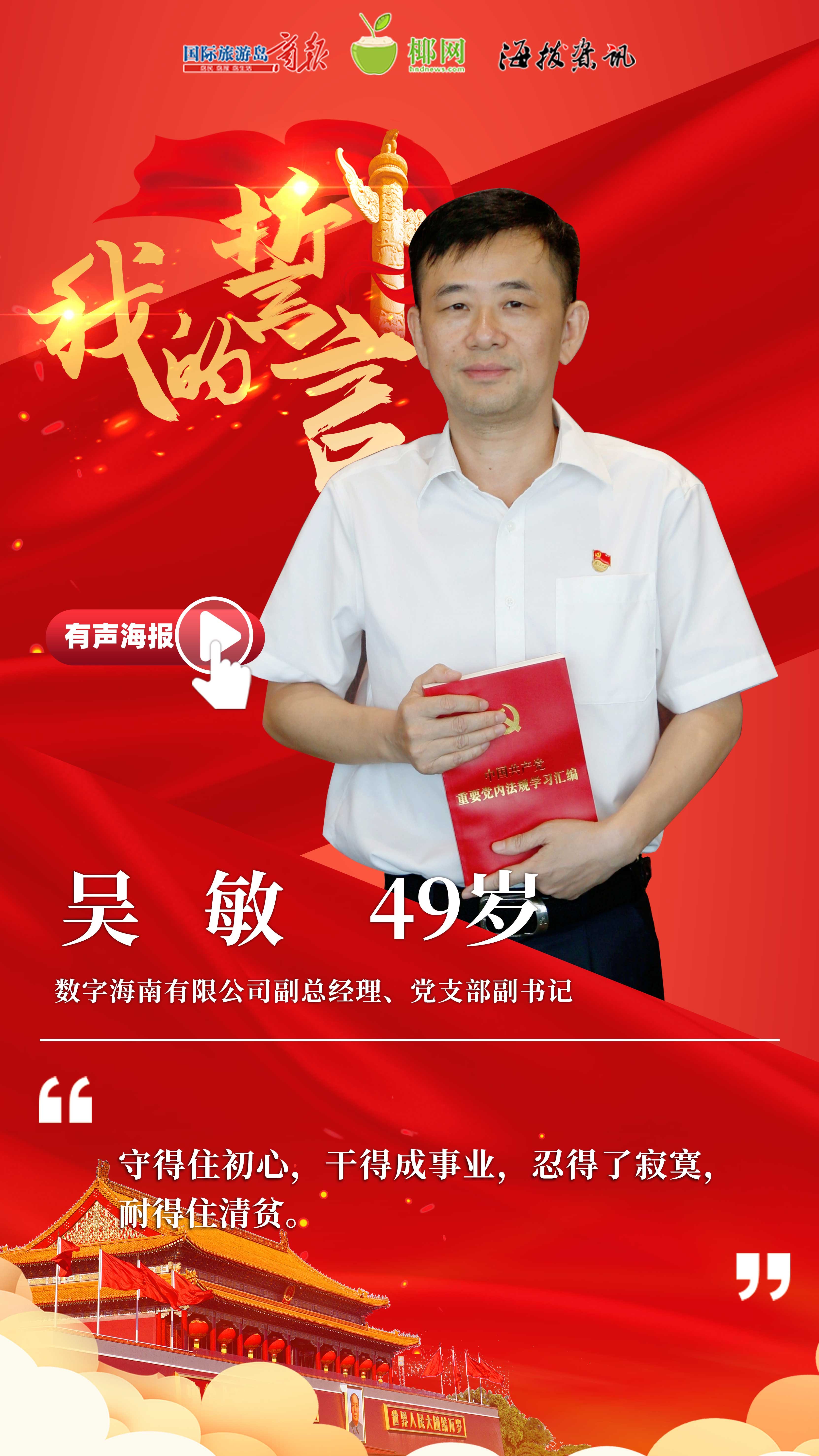 商报全媒体讯(椰网/海拔手机端记者 吴英艳)“那是1992年12月22日,我在教室里面对党旗庄严宣誓‘我志愿加入中国共产党.......’”说起大学时的入党情景,吴敏记忆犹新。那年,他才19岁,是一个有理想抱负的年轻小伙子。如今,作为一名拥有30年党龄的老党员,他在工作中恪尽职守、始终坚持“让数据多走路,让百姓少跑腿”的工作初心,投身于信息化建设事业中。