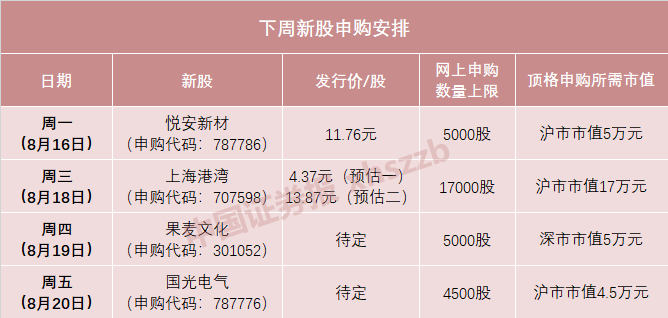 下周新股申购信息一览