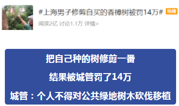 (原标题:男子修剪自己种的香樟树,竟被罚款14万!城管回应...)