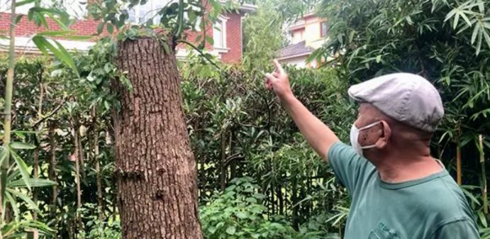 今年1月20日,家住上海松江区绿洲比华利花园的李先生请人来修剪一棵香樟树,这棵树是他在2002年花费1.1万元买来的。此前,他将树种在院子内,随着香樟树越长越高,遮挡了家中的阳光,几年后,李先生又将香樟树移到了院外。又过了数年,香樟树继续生长,再次挡住了院内花草的阳光,李先生这才决定将香樟树修剪一番。于是他请来工人,将树的分枝全部砍除,剩余2米多高的主干。