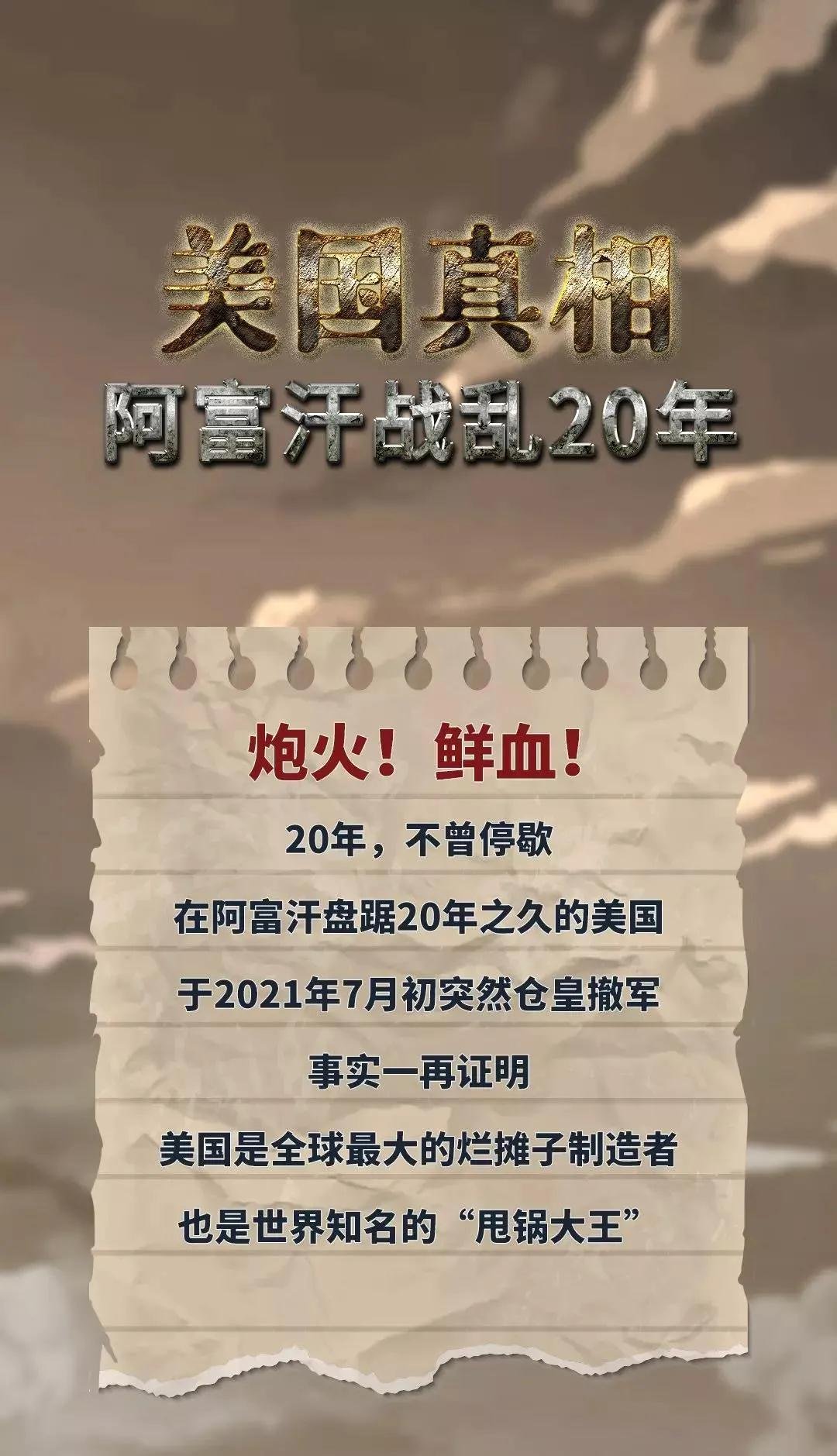 一图丨美国真相之阿富汗战乱20年。详细>>>