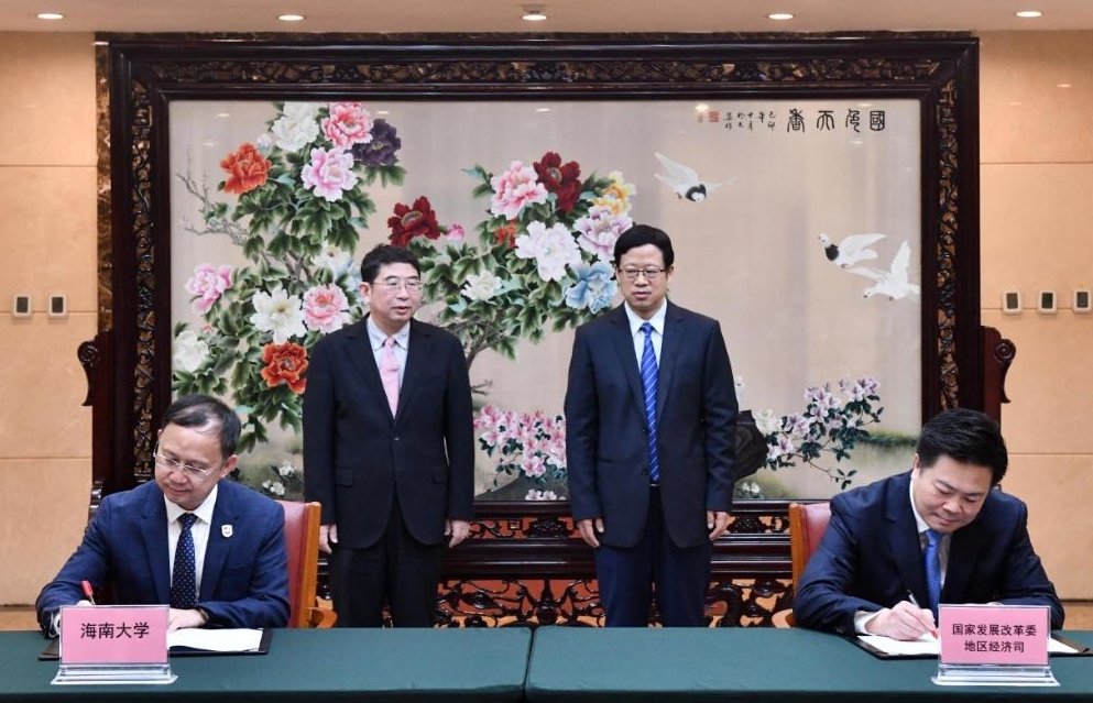 商报全媒体讯(椰网/海拔手机端记者 鲁启兰 通讯员 余梦月)9月6日上午,国家发展改革委地区经济司与海南大学战略合作框架协议签字仪式在京举行。国家发展改革委党组成员、副主任丛亮,海南省人民政府副省长王路见证签字仪式。国家发展改革委地区经济司司长肖渭明、海南大学校长骆清铭分别代表双方在协议上签字。