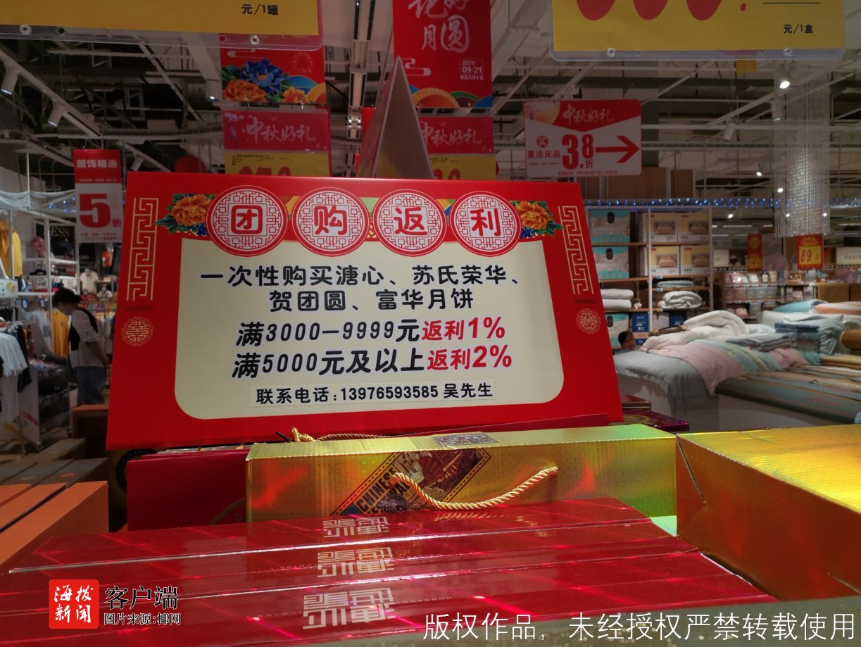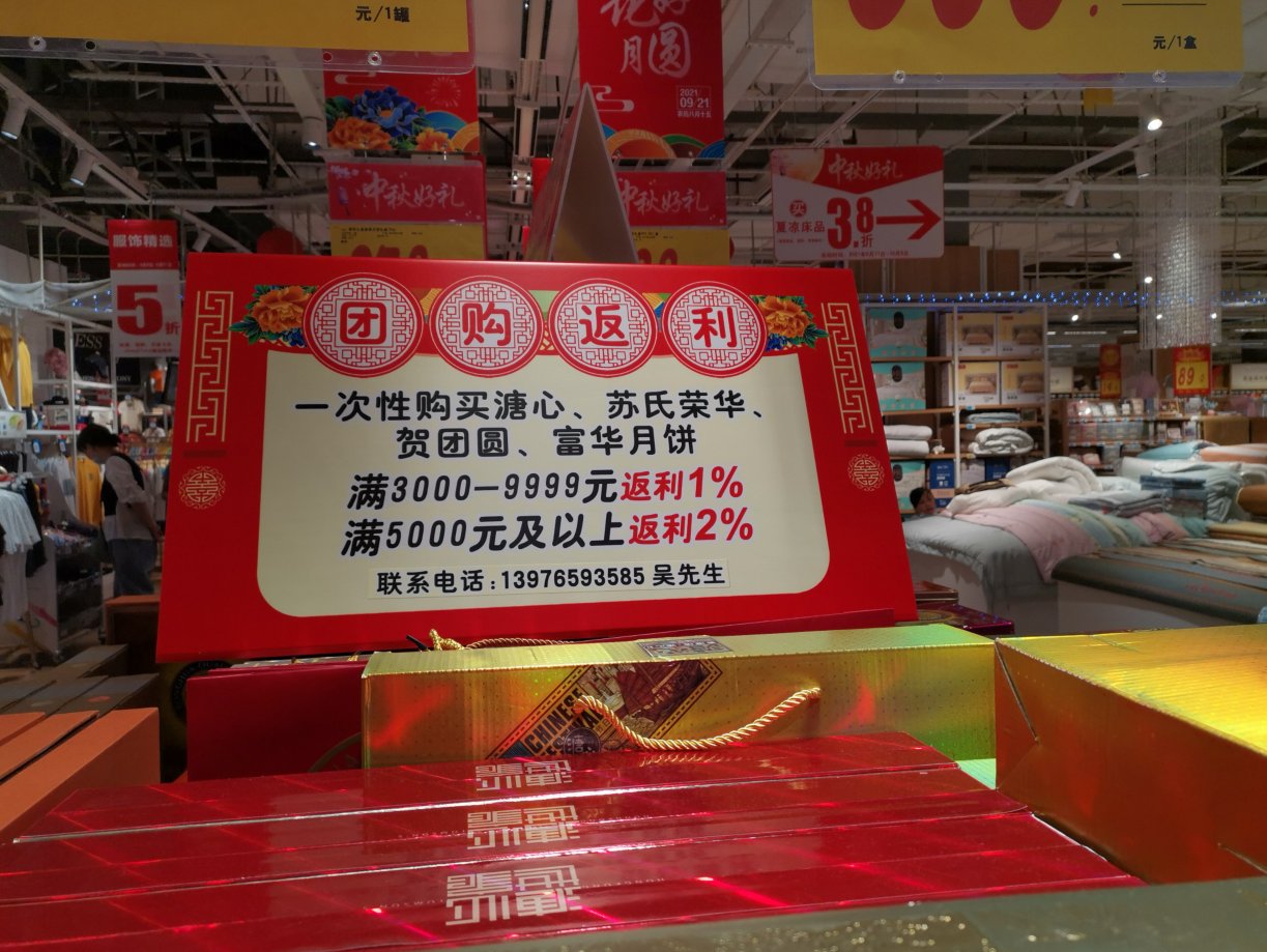 除此以外,还有很多品牌的月饼参加返利活动,一次性购买溏心、苏氏荣华、贺团圆、富华月饼满3000至9999元返利1%,满5000元及以上返利2%;一次性购买裕达月饼满1500元返利2%,满3000元返利3%,满5000元及以上返利4%。