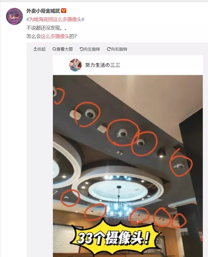 昨晚有博主发文:为啥海底捞这么多摄像头?不说都还没发现。。怎么会这么多摄像头的?