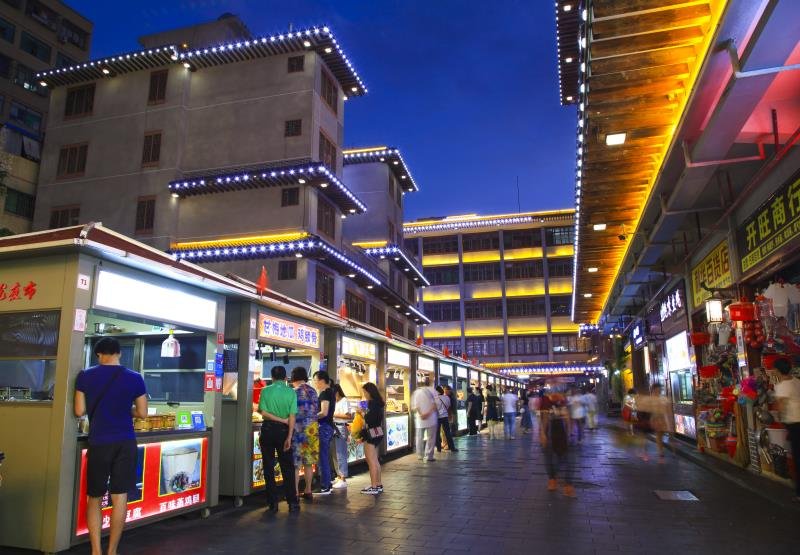 除了感受传统文化,在五公祠感受夜晚来临时分声光电的夜宴浪漫,在忠介路步行街感受城市夜市和飘雪市集带来的味蕾冲击,在日月广场来一场全方位的购物新体验。