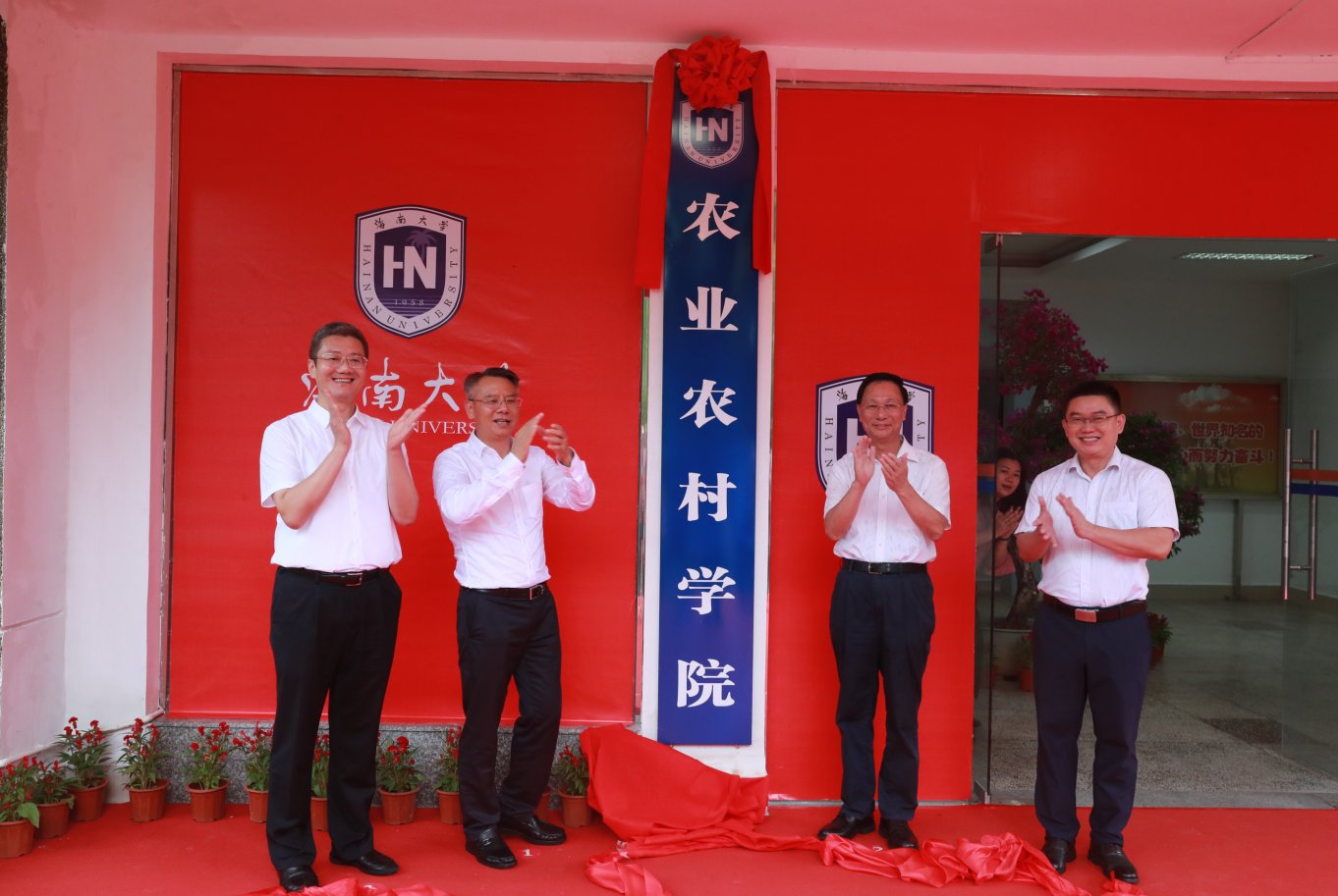 省政府副省长刘平治, 海南大学党委书记符宣国,儋州市委副书记、市长邹广,省乡村振兴局副局长杨晓刚等相关领导出席揭牌仪式并为海南大学农业农村学院揭牌。