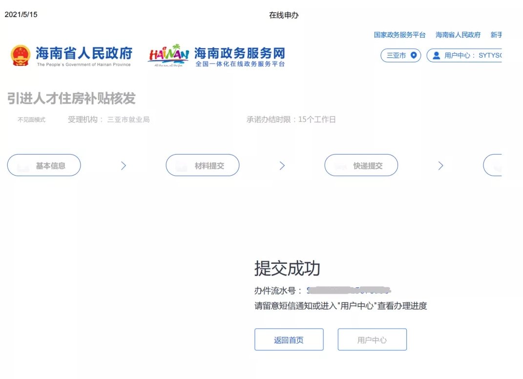 商报全媒体讯(椰网/海拔手机端记者 谢佳宁)10月30日,国际旅游岛商报记者从三亚市政务中心了解到,日前,三亚市政务中心人才政务服务“单一窗口”(以下简称“人才服务窗口”)对申报三亚市人才住房补贴和购房补贴的条件和流程进行更新。