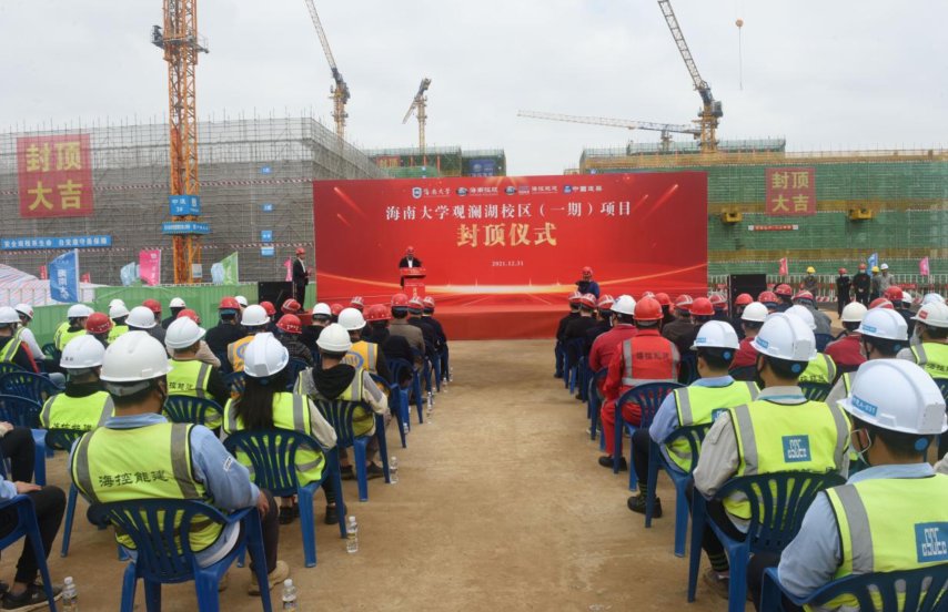 商报全媒体讯(椰网/海拔手机端记者 鲁启兰 通讯员 张平恒 李天畅)12月31日上午,海南大学观澜湖校区(一期)项目顺利实现封顶。海南大学党委书记符宣国,中国科学院院士、海南大学校长骆清铭出席项目封顶仪式。