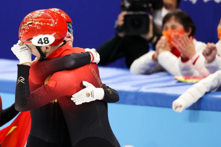 从过去四年的起起伏伏,到这一夜三场比赛的曲折,这枚北京冬奥会的“首金”有多么来之不易,都融在了武大靖和范可新激动的泪水里。