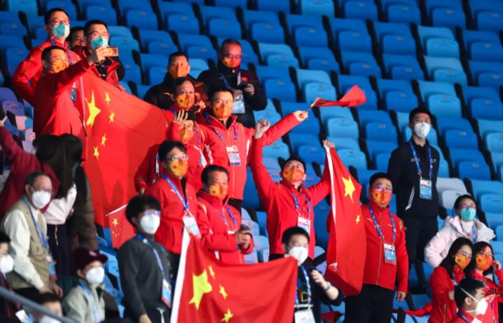 由于疫情,过去两年多时间里,像这样全场齐声呐喊“中国队加油”的场面已经很久没有出现。但这还并非首都体育馆在这一夜的最高潮。