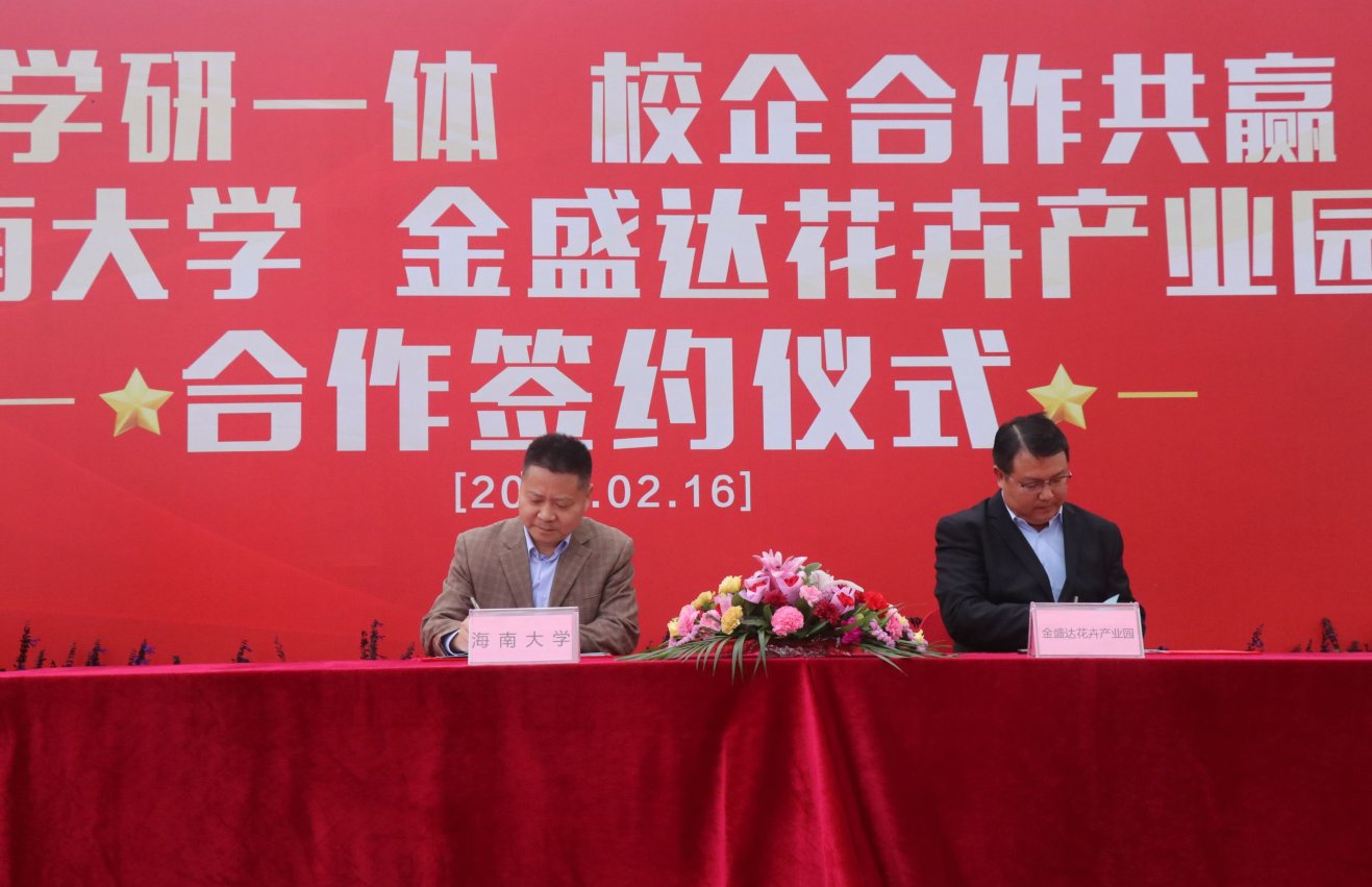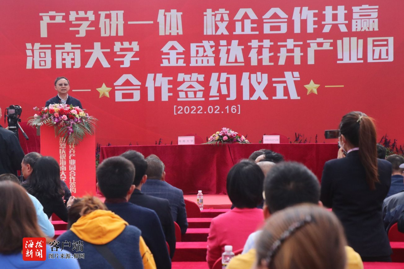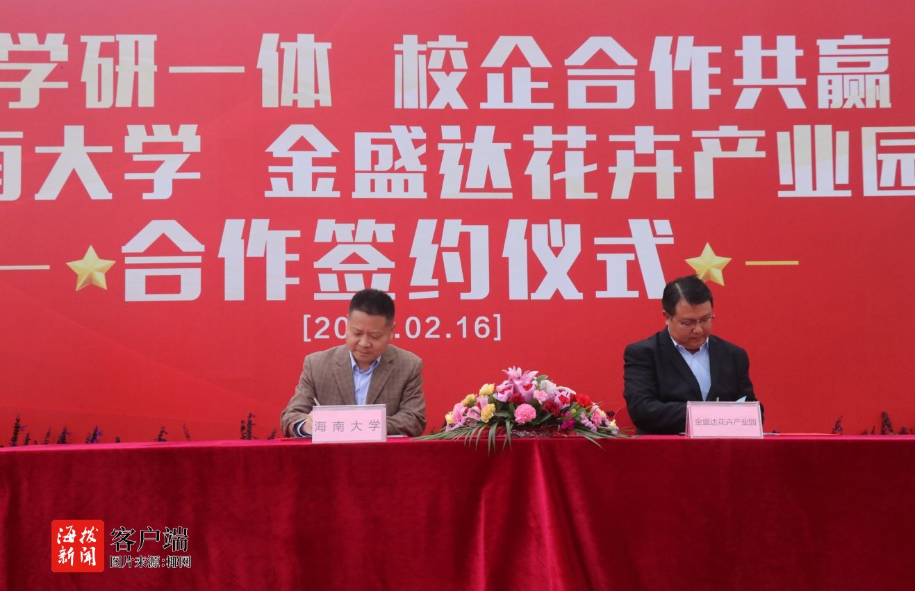 商报全媒体讯(椰网/海拔手机端记者 王辉 摄影报道)为持续加大对海南自贸港建设和乡村振兴等重点领域的支持力度,发挥企业对社会的责任,提供社会价值,金盛达花卉产业园无偿提供土地30亩给予海南大学,用于农业产业园的研究建设与发展。2月16日,在金盛达花卉产业园举办了签约合作暨项目启动仪式,揭开“产学研一体,校企合作共赢”新篇章。