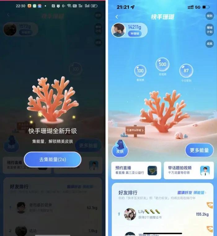 值得一提的是,伴随“海底花园”计划发布,近期“快手珊瑚”公益产品也进行了升级。在原来的发作品、看视频、邀好友等方式基础上,增加了点赞、评论、分享等更多可以获取能量的互动方式;产品趣味方面,增加了互偷好友能量、比拼好友排名等更为丰富的公益互动形式;还增加了用户反馈层面,以用户之名种下的珊瑚上的专属铭牌,用户可以自定义铭牌内容,让海洋公益更有仪式感。