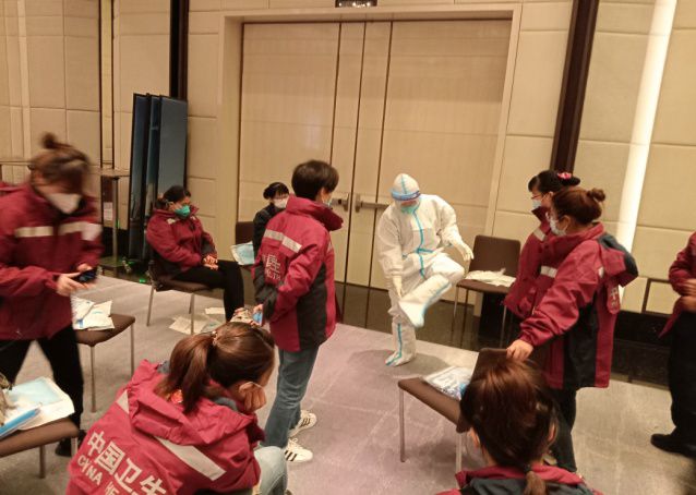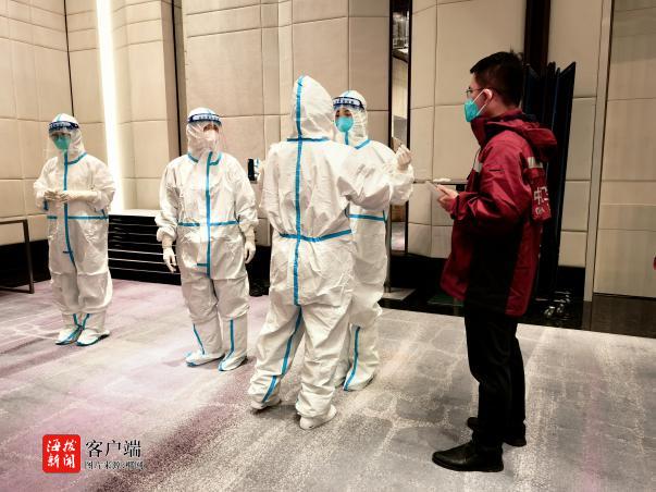 16时,专家对全体队员穿脱隔离衣进行了首次考核。也是在这一天,队员们正式了解到他们和海南省中医院、乐东县第二人民医院等5家医院组成的医疗团队在未来一段时间的任务——负责嘉定区一个1300张床位的方舱医院医疗救治工作。