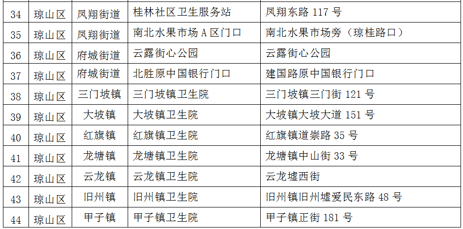 原则上每个采样点设置2个绿码人员通道和1个黄码人员通道,55个点位地址详见附表。
