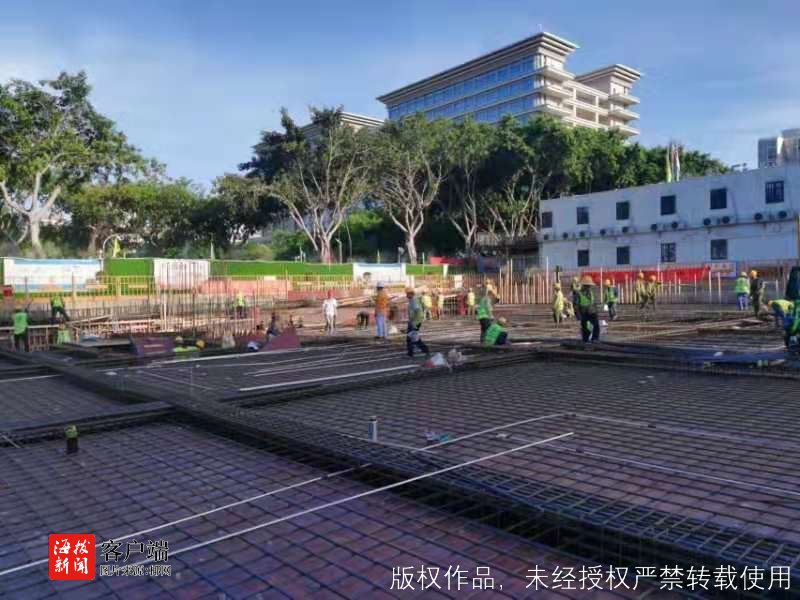 商报全媒体讯(椰网/海拔手机端记者 徐明锋 李兴民 摄影报道)4月13日,位于海口国兴大道的省政务中心二期项目建设现场热火朝天,项目文明施工、有序推进,工人干劲十足。该项目由海南万泰建筑工程有限公司承建,曾荣获海南省首届BIM技术应用大赛“优秀”奖、入选海口市建筑工地扬尘治理“红榜”等。