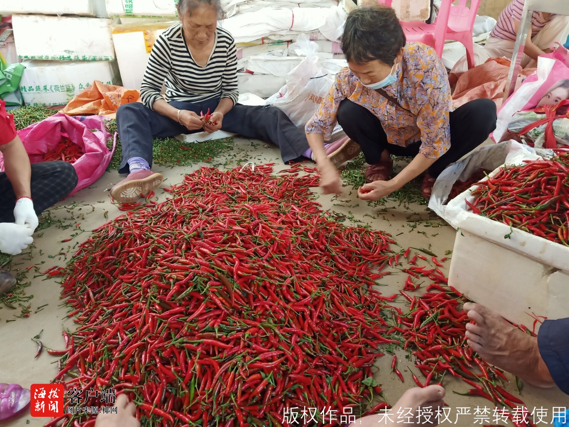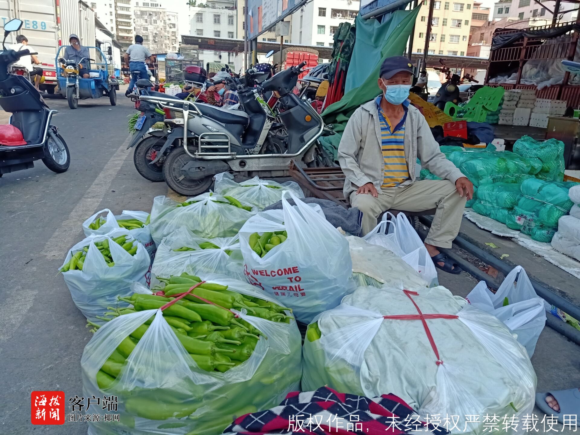 在凤翔蔬菜批发市场里,琼山区凤翔街道办一村民说,他今年种了2亩辣椒,总体价格比去年和前年好多了,前两年每年种辣椒都亏损,今年春节前尖椒上市,每斤可以卖到3元左右,现在已经到后期,每斤辣椒地头价在5毛以上,总体而言,今年种辣椒比前两年的收入都好。