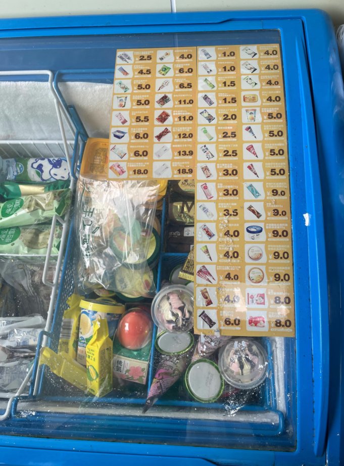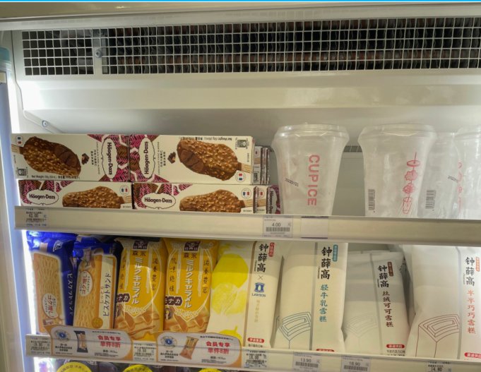 与该家罗森便利店同一条街不到50米的地方,坐落着一家易买便利店。该便利店的冰柜柜门上也贴着雪糕价格表。价格表中普通雪糕均价约为1到6.5元,钟薛高轻牛乳雪糕和丝绒可可雪糕两款网红雪糕的价格分别为13.9元与18.9元。但记者搜寻柜内,并未发现柜中有售卖钟薛高系列雪糕。“我们的钟薛高没货了。”该店的店员告诉记者。