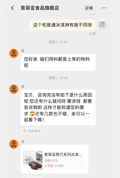 “我就是来买网红冰淇淋的,我买的是索菲亚原巧冰淇淋,花了17元。”95后女孩小若告诉记者,自己喜欢紧跟潮流,购买网红冰淇淋后会在朋友圈打卡。