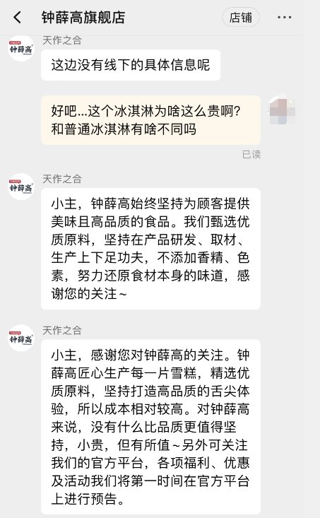 随后,记者在淘宝APP上找到了官方旗舰店“钟薛高旗舰店”了解相关情况。